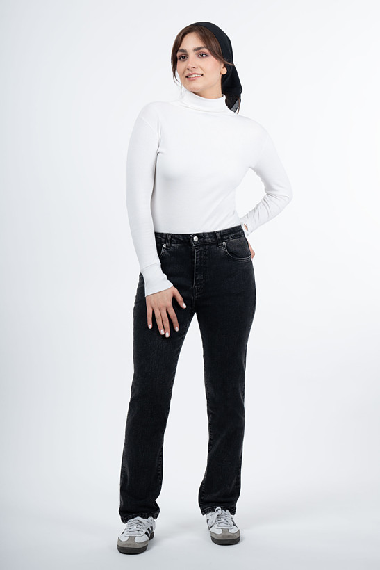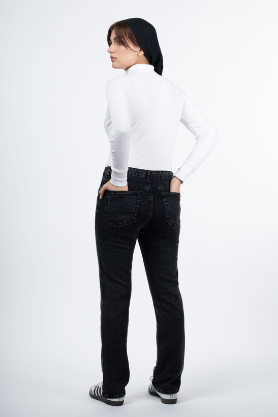 شلوار جین راسته (Straight) کمر ساده بدون زاپ - قد 100 - ذغالی