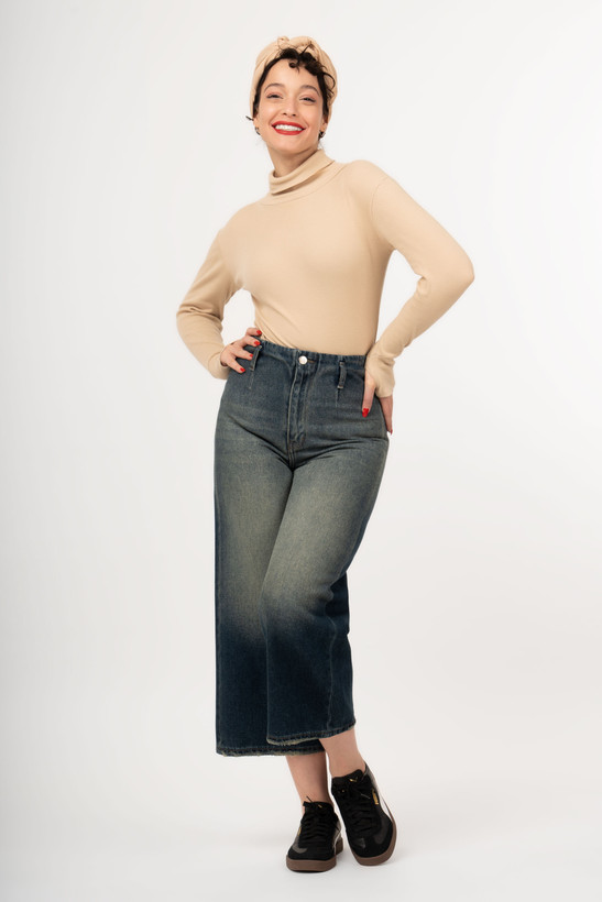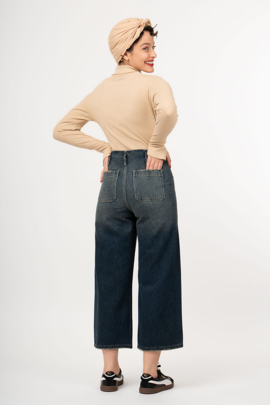شلوار جین واید لگ کمر ساده دمپازاپ - قد 90 - آبی وینتج