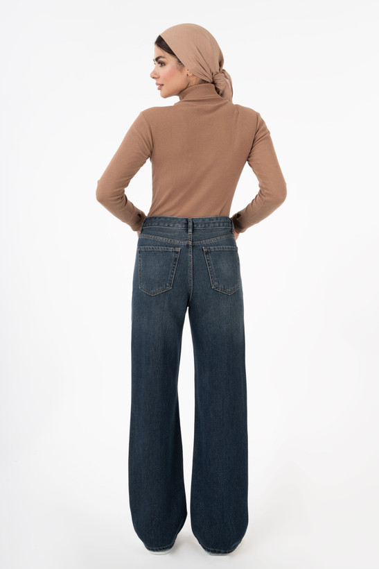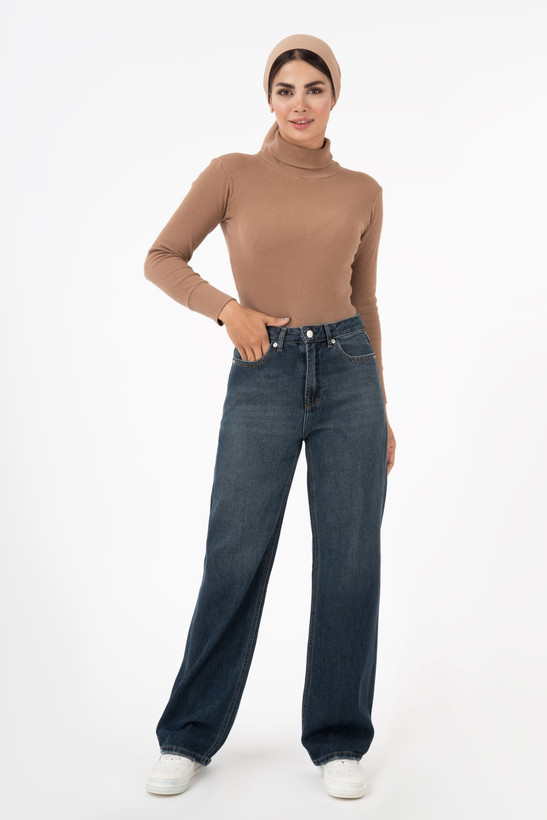شلوارجین راسته لاین ( Royal Jackpot Straight line )کمر ساده دمپا زاپ قد 110 آبی تیره