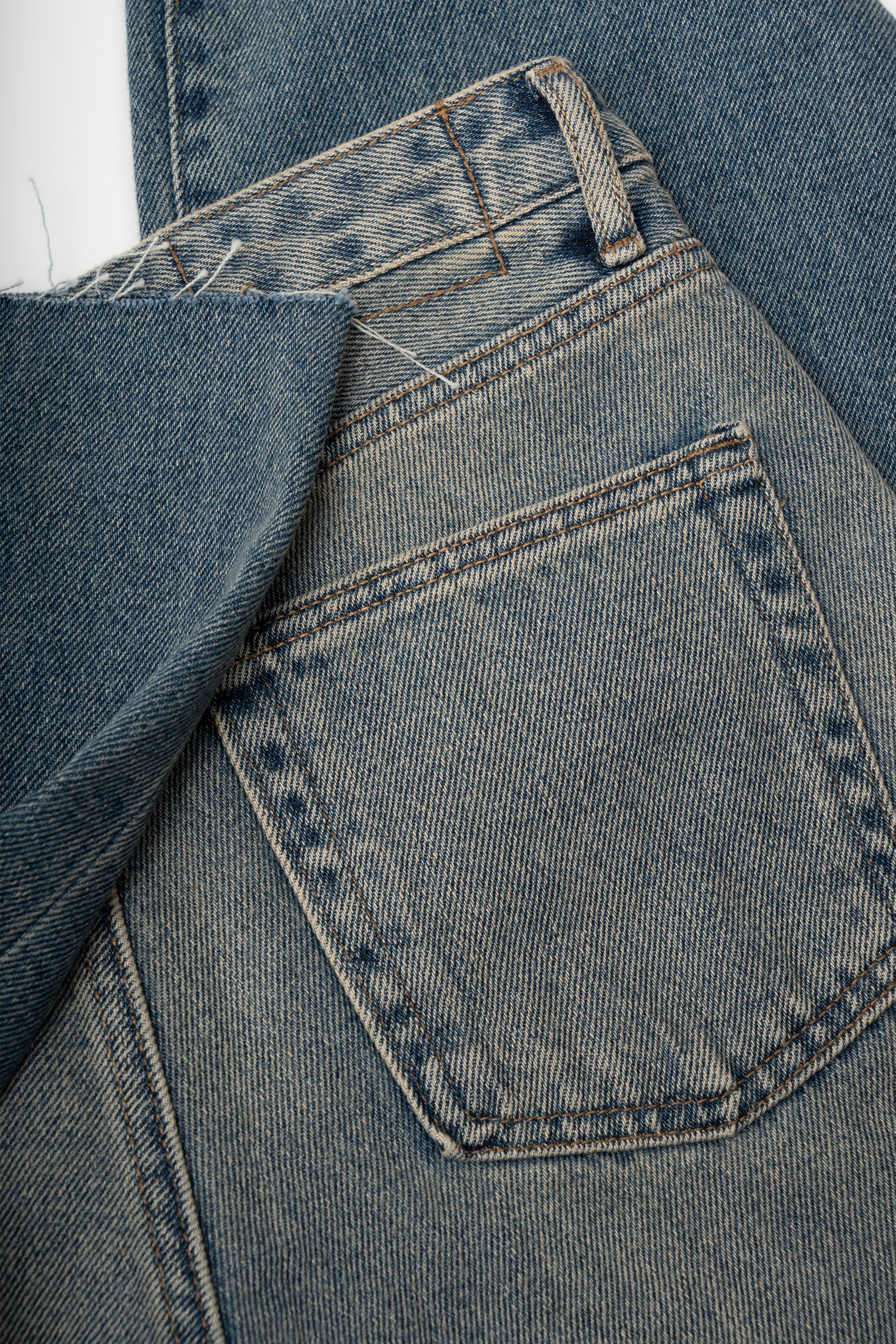 شلوار جین لانگ واید لگ کراپ (Long Wide Leg Crop) کمر ساده بدون زاپ - قد 90 - آبی تیره برفکی