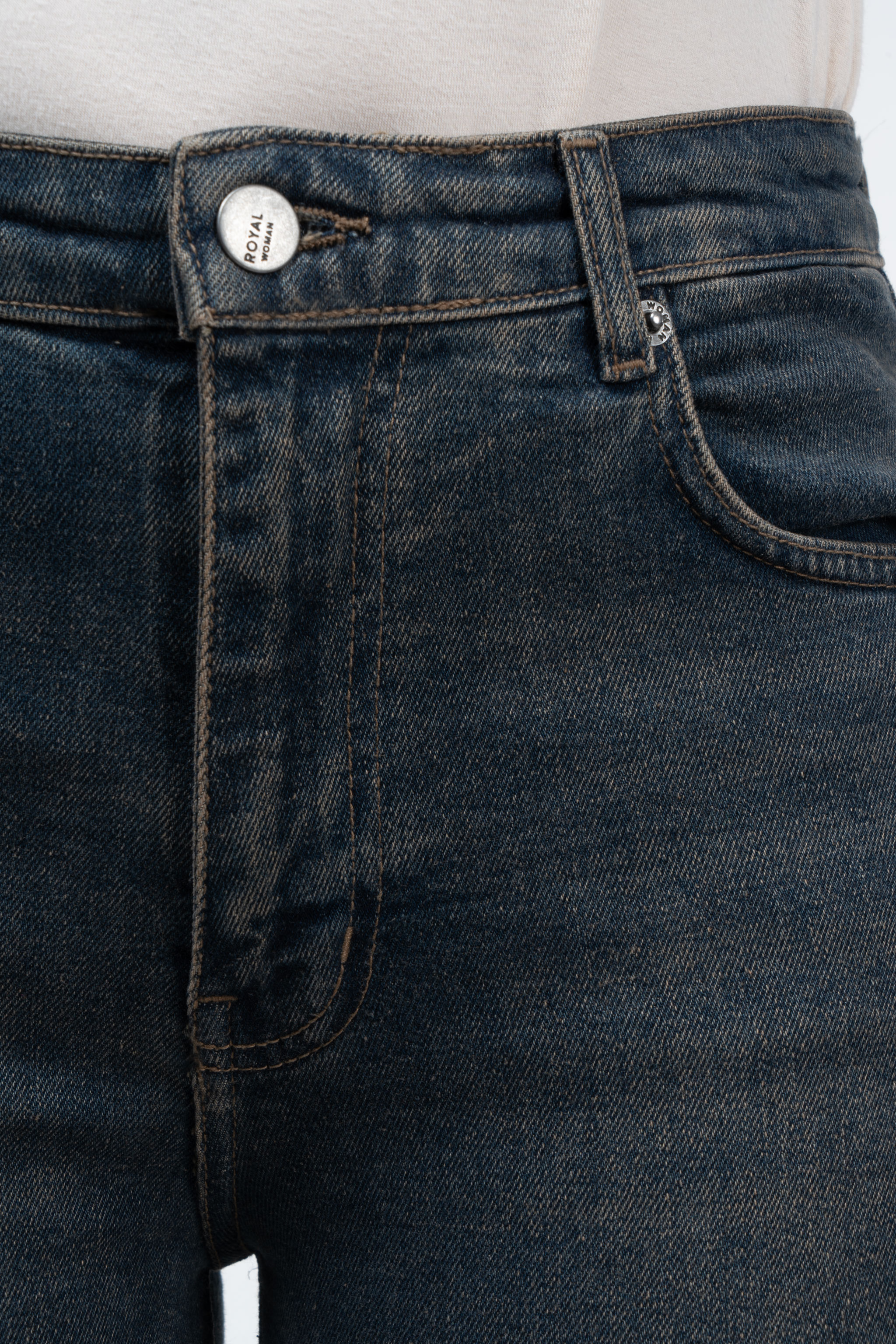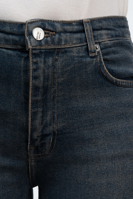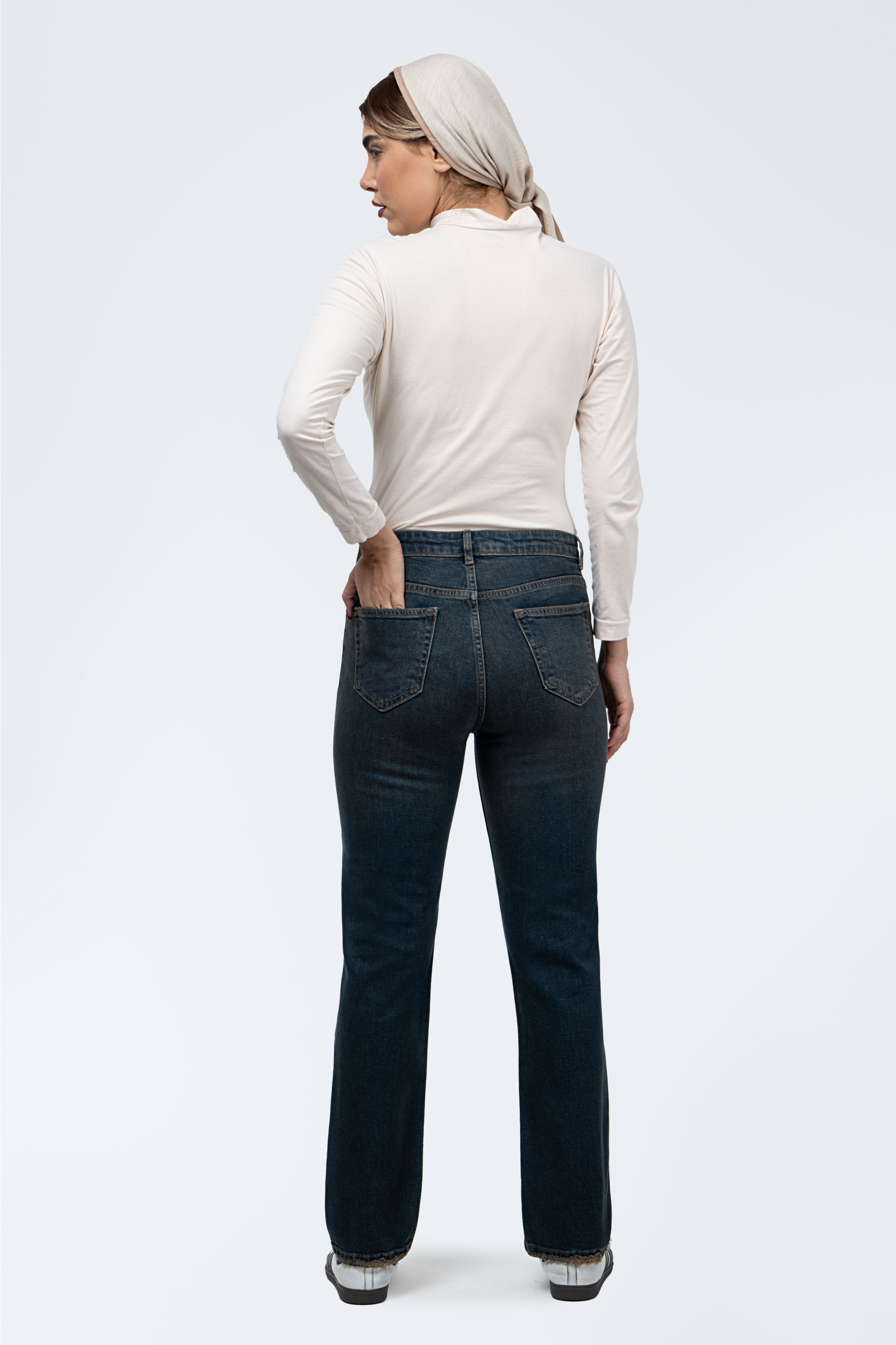 شلوار جین راسته (Straight) کمر ساده دمپازاپ - قد 100 - آبی تیره کثیف شور