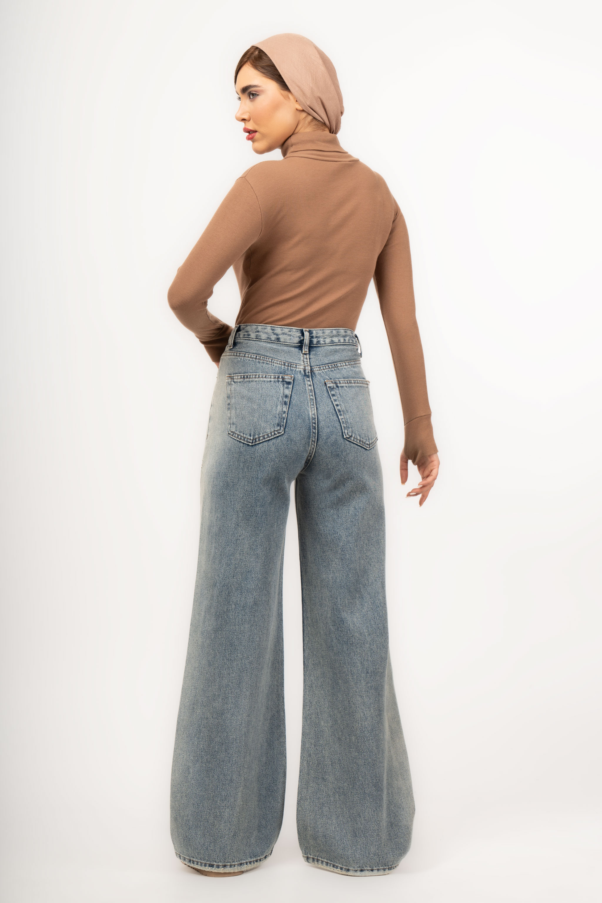 شلوار جین بگی (Baggy) کمر ساده دمپازاپ - قد 110 - Blue Side Bleach